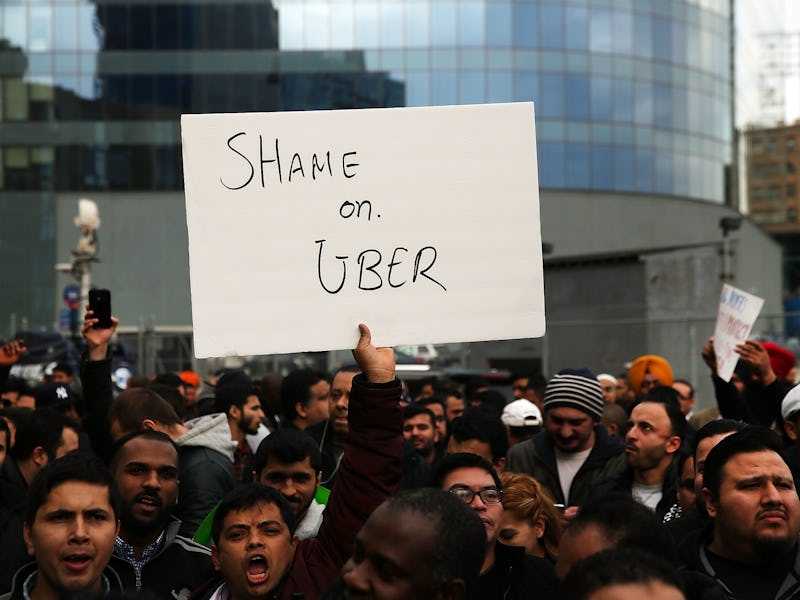 Uber drivers protest fare cuts in NYC in February 2016.