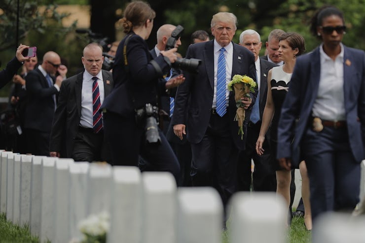 While President Trump’s @POTUS account was tweeting about the Portland attack, the president himself was preparing to attend a Memorial Day ceremony at Arlington National Cemetery.