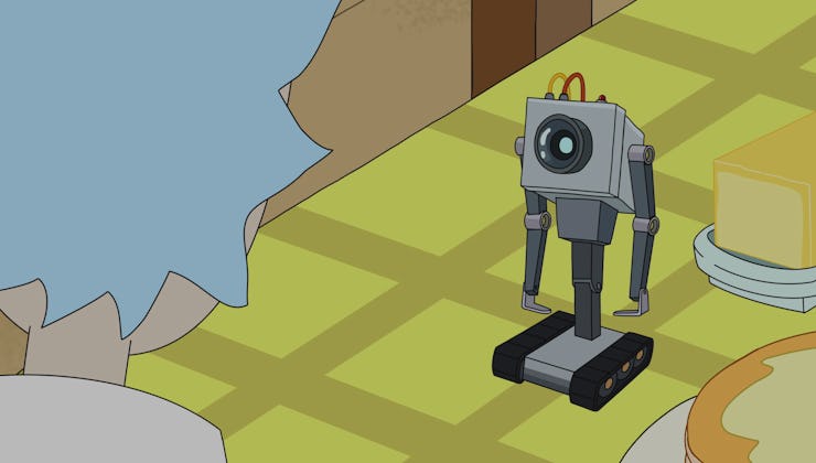 The original “Butter Robot” was a small, mobile robot Rick Sanchez created in the opening to “Something Ricked This Way Comes.” After Rick confirmed that its sole purpose was to pass butter, the sentient bot replied, “Oh my god.”