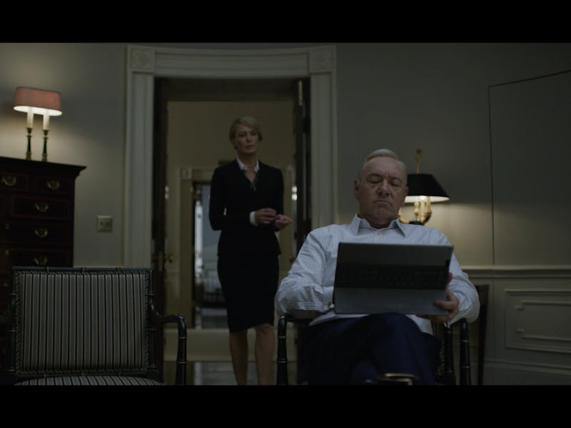 “Do you think this really works?” Frank asks First Lady Claire (Robin Wright) at the beginning of the second episode. He is playing with a composite of their two faces.