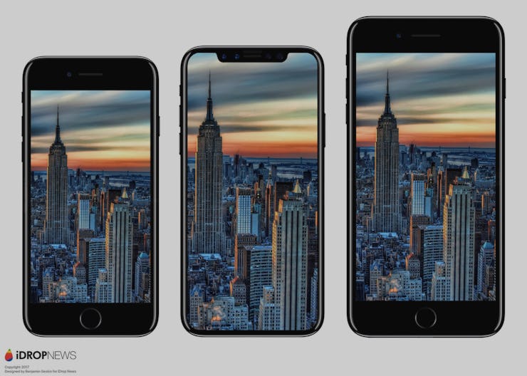 On Tuesday, prolific Apple leaker Benjamin Geskin shared some new renderings with iDropNews of how the iPhone 8 will look when compared to the iPhone 7 and 7 Plus. The result is a device that makes Apple’s current lineup look decidedly ancient, one that ditches the ugly bezels of its predecessors in favor of a sleek, modern design reminiscent of the Samsung Galaxy S8.