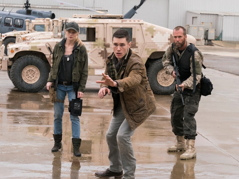 The majority of the Otto family’s origins came from co-showrunner David Ericksen, who informed Underwood of his backstory just a day before shooting began. But Underwood, who grew up in Surrey located 23 miles outside London, performed extensive research into the life of a survivalist. “It was a culture shock to me,” he tells Inverse about his binge-watching of Doomsday Preppers and survival videos on YouTube. “People living like this on a day to day basis, as if an apocalypse is happening now, they do believe there is a threat from ‘the other’ and the threat is happening now and they have to live this way in order to survive. It blows my mind.”