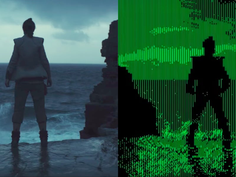 Indonesian illustrator Wahyu Ichwandardi took it upon himself to remake the only look Star Wars fans have been given for The Last Jedi by using a 1984 Apple llc. The result is a delightful, violently green-tinged piece of art that casts Rey, Finn, and Poe Dameron as video game characters.