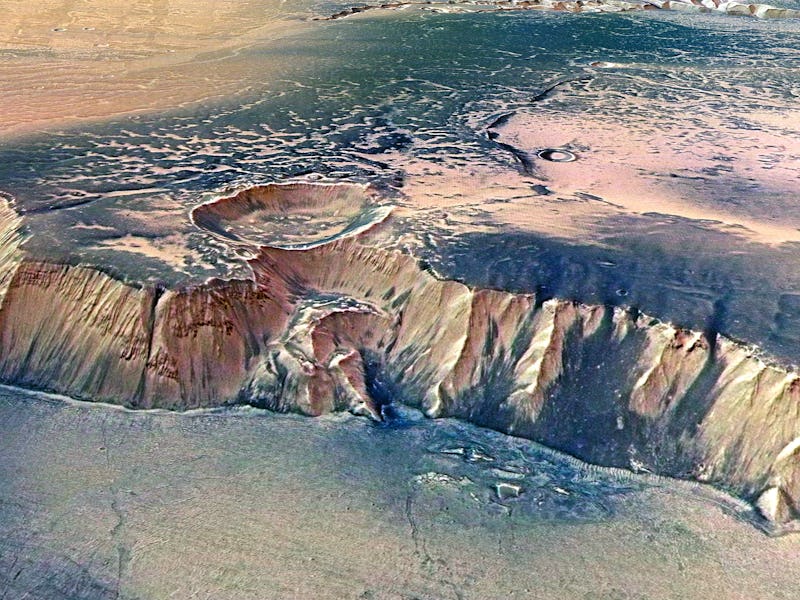 In 2015, NASA’s Mars Reconnaissance Orbiter discovered signs of a powerful oxidant called perchlorate in what was perceived to be wet streaks running down canyons and crater walls on the planet’s surface. The presence of perchlorates on Mars had actually been detected by Mars Viking landers as far back as the ‘70s. It was theorized that alien bacteria could potentially use the perchlorates as an energy source, implying that perceived damp streaks spotted on Mars’s surface were some of the best bets for places to look for microbial life.