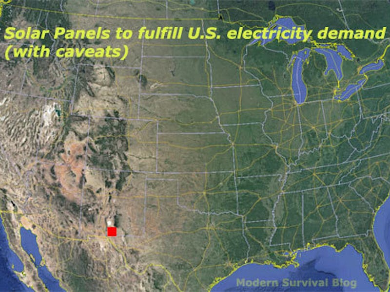 “If you wanted to power the entire United States with solar panels, it would take a fairly small corner of Nevada or Texas or Utah; you only need about 100 miles by 100 miles of solar panels to power the entire United States,” Musk said at at the event in Rhode Island. “The batteries you need to store the energy, so you have 24/7 power, is 1 mile by 1 mile. One square-mile.”