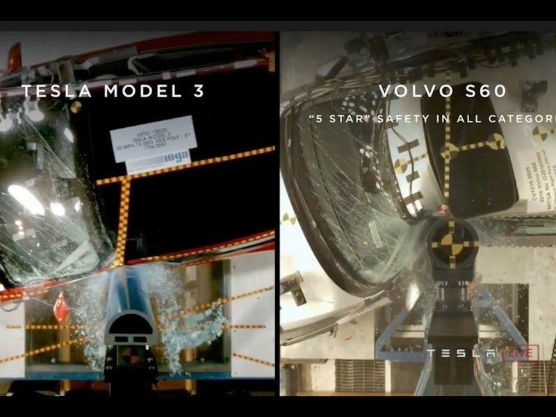 Tesla has been hyping up the safety of its vehicles for years, but on Friday night Tesla CEO Elon Musk casually dropped a stupendous clip of side-by-side footage that shows just how the brand-new Tesla Model 3 holds up to punishment.