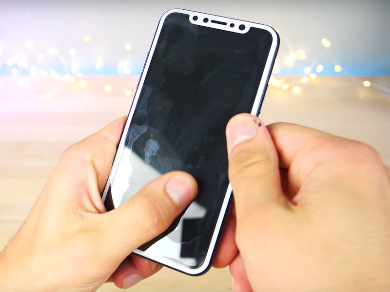 This shape resembles the device as seen in leaked images. The iPhone 8 is expected to pack a 5.8-inch screen in a phone the same size as the 4.7-inch iPhone 7, extending the screen to the far borders by using OLED screen technology to create a non-square screen shape.