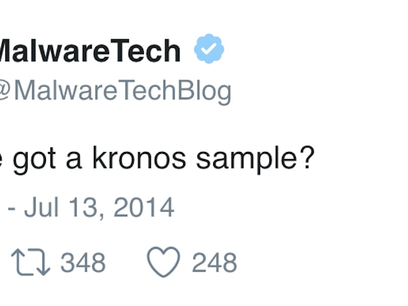 A tweet from 2014 resurfaced on Thursday that shows Marcus Hutchins — aka MalwareTech, the security researcher who accidentally stopped the WannaCry malware attack in May — was looking for a sample of Kronos, a banking malware program.
