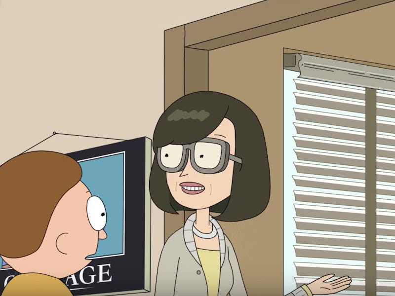 Susan Sarandon’s upcoming guest character on Rick and Morty specializes in family therapy sessions, but she also treats people like Mr. Goldenfold for their addictions to eating poop. (She even has a double-sided inspirational poster on her wall meant for each clientele type.)