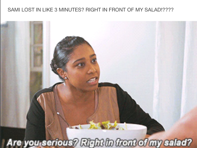 Nikki V. told Mic, “The whole thing with the salad was me basically improvising. I was just ad-libbing,” which makes sense, considering the out of context exclamation feels too real for such a ridiculous scene. It’s divorced from anything a real woman would say, if she were to find her husband having sex with a man in their kitchen, and that’s what makes it so memorable.
