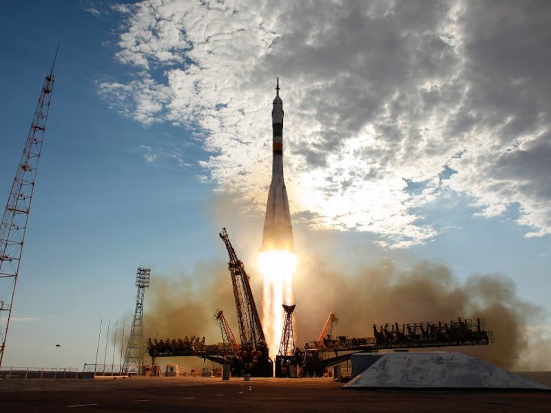 A Roscosmos Soyuz rocket prepares for launch in July.