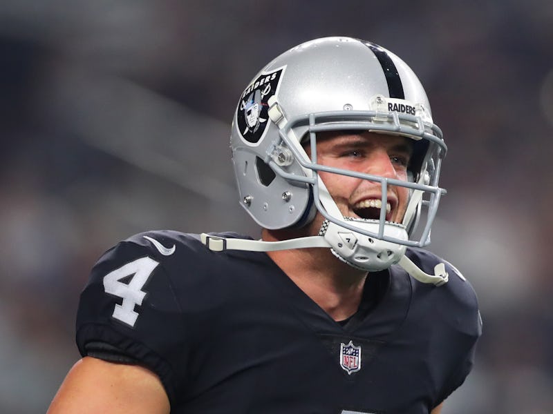 Two of the most promising young quarterbacks in the NFL face off this Sunday as Derek Carr and the Oakland Raiders visit Nashville to take on Marcus Mariota and the Tennessee Titans. A hive mind of more than 40 NFL fans like Carr and the Raiders to come away with the big road victory to start the season.