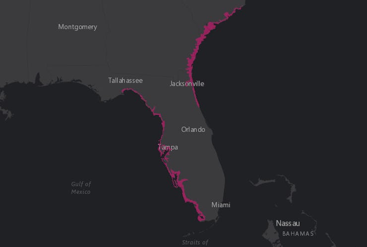 The coastal region between the South Santee River ad Fernandina Beach as well as the area between Clearwater Beach and Ochlockonee River are expected to be hit by the largest storm surge, with waters rising to four to six feet above ground.