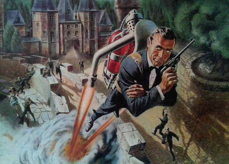 For many people, James Bond was and remains the epitome of cool, whether he’s being portrayed by Pierce Brosnan or Daniel Craig. But one of the most iconic iterations of Bond, if not the definitive portrayal, comes from Sean Connery, everyone’s favorite Scotsman with a lisp. In 1965’s Thunderball, Connery-as-Bond makes a speedy getaway via jet pack after murdering a SPECTRE operative in the operative’s chateau. It’s nice to see that Bond wears a helmet while using the jet pack, because even spies should know to put safety first.