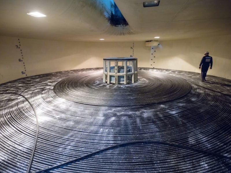 It’s about 1.5 times the diameter of a garden hose and composed of eight pairs of fiber optic cables protected by a layer of copper, a hard-plastic layer, and a waterproof coating: