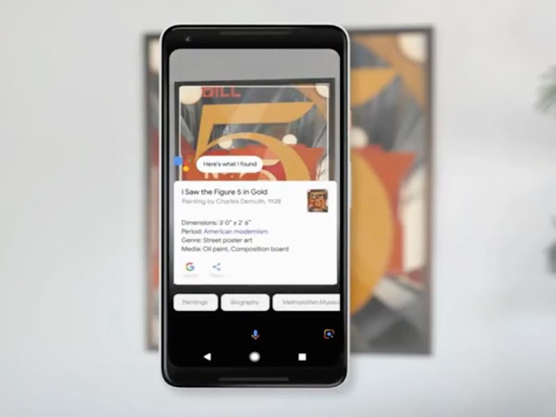She then went on to demonstrate how Google Lens — once available on Pixel phones — will be able to give users realtime insight into what they’re seeing in the world. As an example, she used the Google Assistant-connected image recognition app to accurately identify a print of Charles Demuth’s 1928 painting “I Saw the Figure 5 in Gold.”