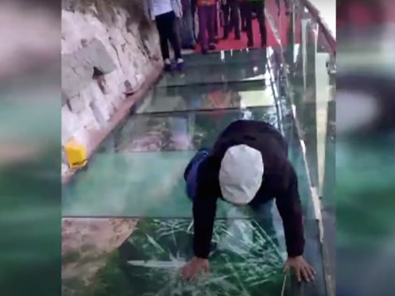 High in the hills of the Hebei Province of China rests the East Taihang Mountains. One way for tourists to explore these mountains is by crossing a glass bridge at the Taihang Mountains Scenic Area, located over 3,800 feet above sea level. Recently, videos of tourists experiencing a terrifying special effect that makes it look and sound like the glass is shattering below their weight have gone viral.