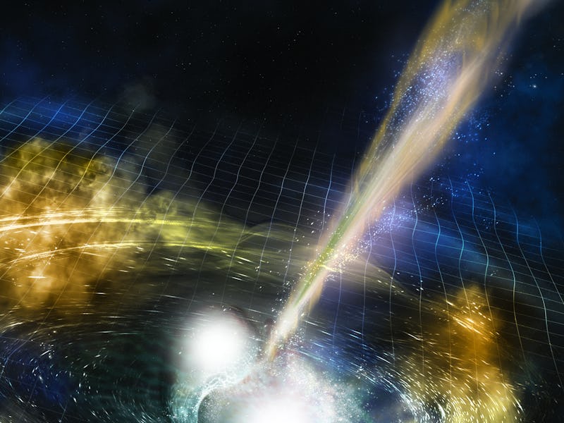 An artist's rendering of a neutron star crash, known as a kilonova.