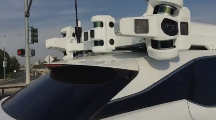 There’s a lot of technology into this roof-mounted unit, which used a Lexus sports utility vehicle as its test bed. It’s got 12 Lidar sensors, six on the front and six on the back, which are used by autonomous cars to judge how far away objects are by firing lasers and timing how long it takes to come back. Beyond that, the roof contains radar technology and what MacAllister said is “likely” the majority of the computing hardware.