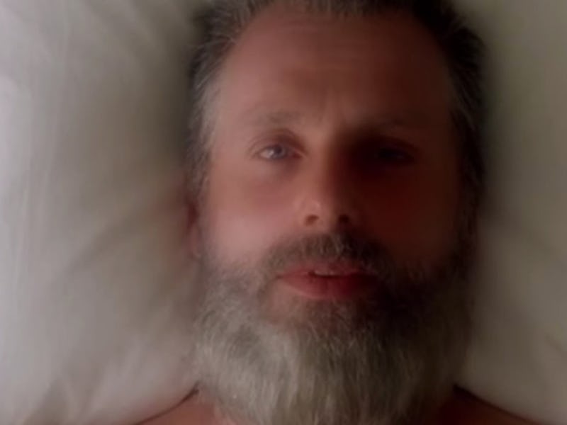 “Old Man Rick” was first seen at the end of The Walking Dead Season 8 trailer that came out at San Diego Comic-Con in July. We saw shots of his cane and bed throughout the Season 8 premiere, but the main image of Rick lying in bed hearkened back to the show’s very first episode: