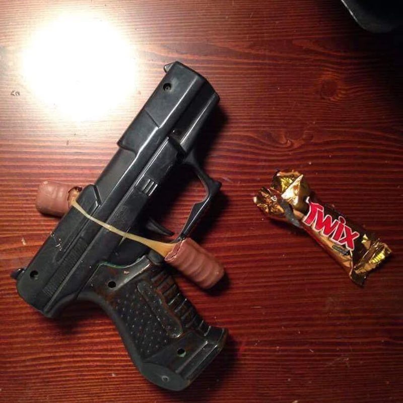 A viral photo of a gun “stuck” between a candy bar ridicules the fears surrounding Halloween candy, but it also points to another scenario in which people tend to have a disproportionate amount of fear: death by mass shooting.