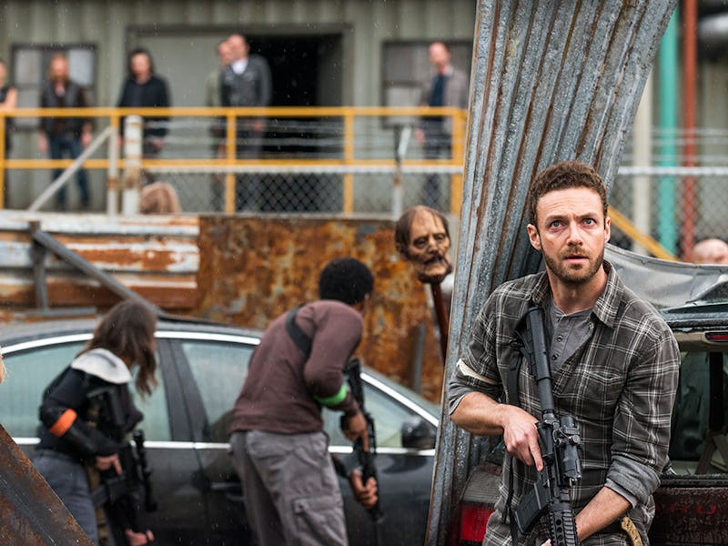 In Episode 2, “The Damned” a ton of screen time is donated to a massive firefight in which a team that includes Aaron and Eric pin some Saviors down while they wait for some undead backups to rip them to shreds. Several separate groups execute side missions: Rick and Daryl hunt for weapons, Morgan tries to take over a satellite dish. Tons of people die, but the casualties don’t include anybody the show deems “important.”