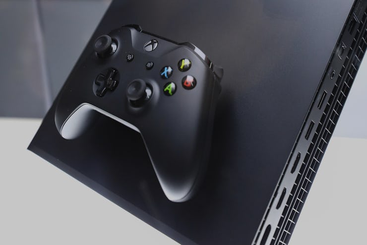 The Xbox One X is displayed during the Electronic Entertainment Expo E3 at the Los Angeles Convention Center on June 13, 2017 in Los Angeles.