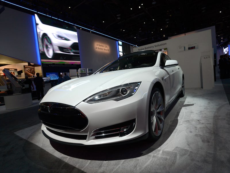 A Tesla vehicle charging up.
