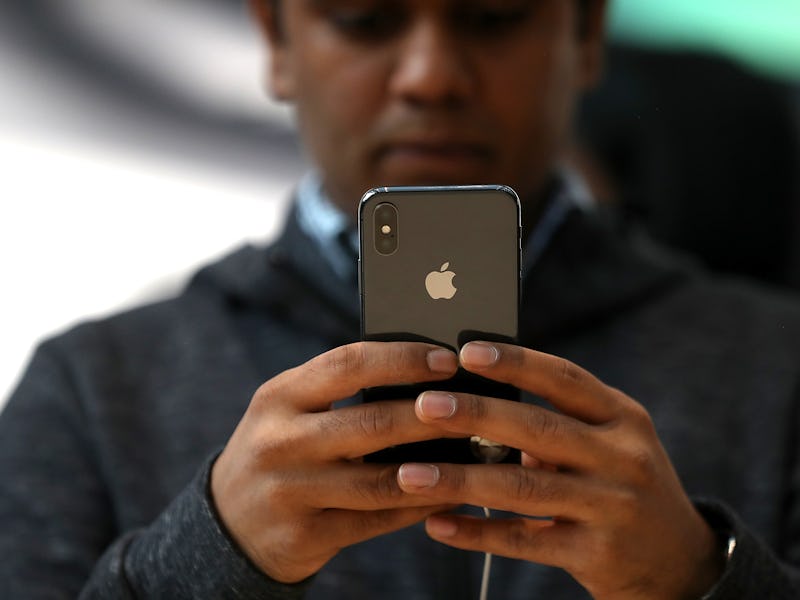 A customer takes a picture of the new iPhone X at an Apple Store on November 3, 2017 in Palo Alto, California.