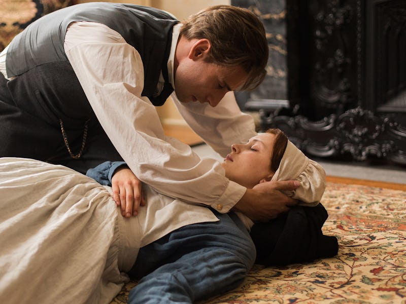 The phenomenon can also be triggered by certain repetitive visual stimuli, which pop up consistently in Alias Grace. As the show progresses and Grace recounts the story of her past, her hands are constantly working. Whether in the past or present, we often see quick shots of hands fidgeting with something or sliding against a surface. Grace spent years in two separate households working as a maid — cleaning, scrubbing, brushing. During her interview sessions, Grace’s hands are constantly pulling and pushing needles as she avoids eye contact with Dr. Jordan, who smiles and scribbles in his notebook.