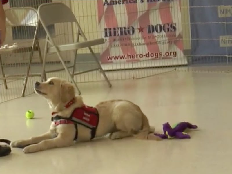 According to the NIH, these dogs are being trained to help people with physical disabilities, specifically military veterans. In addition to helping humans move around, retrieve objects, and navigate, the trained pups may also serve as therapy dogs for the emotionally distressed. While its mechanisms still aren’t entirely clear, puppy therapy has been shown to have noticeable effects in stress relief in many studies. Bernie Sanders, for one, famously attended a puppy stress relief session during his run for the presidency in 2016.