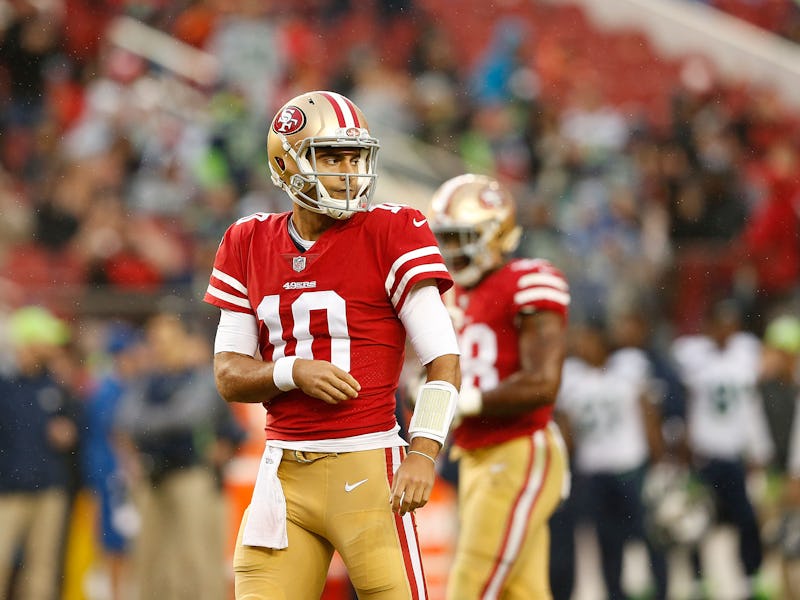 The brief appearance of recently acquired quarterback Jimmy Garoppolo was about the only good thing about the lowly San Francisco 49ers’ loss last week. He now gets his first start for his new team against the equally bad Chicago Bears. A hive mind of about 30 NFL fans predicts the Bears will win Sunday.