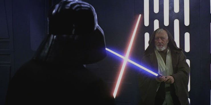 The 46-second teaser spends most of its time setting the scene, with Vader’s scuba mask breath signaling his entry into the ring. Obi-Wan levels his lightsaber similarly to how he actually held it in A New Hope to face off against Vader — then shit goes down.