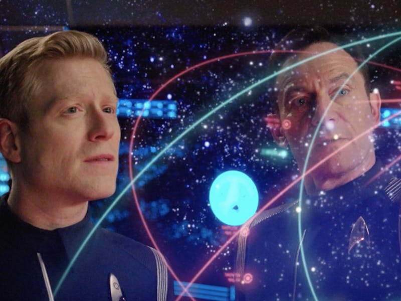 In “Choose Your Pain,” we briefly saw an alternate version of Stamets looking back at our dimension from inside of the mirror. Then, in “Into the Forest I Go,” Stamets mentioned he could see “all the permutations,” presumably referring to the various alternate dimensions he may have glimpsed before the ship jumped. So, perhaps he’s now literally all of his alternate selves rolled into one person. This kind of thing has happened on Star Trek before. In the Voyager episode “Relativity,” we learned copies of people from different dimensions can be forcibly integrated with alternate versions of themselves. Does this mean Stamets is now literally every Stamets?