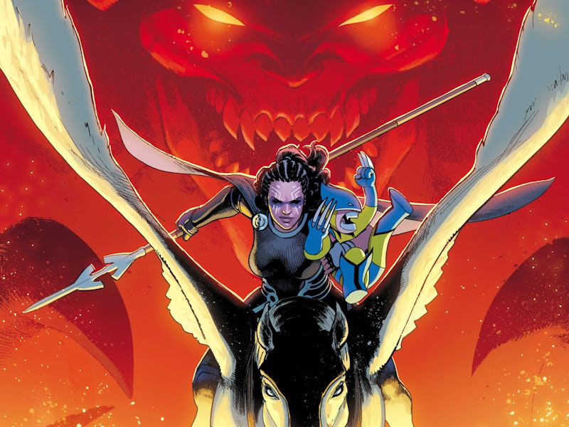 “Valkyrie’s a character who’s always appealed to me. Her iconic warrior-woman look — spear! sword! flying horse! — but also the juxtaposition of a kickass ancient fantasy hero operating in contemporary New York City. She’s a classic Marvel heroine,” series writer Saladin Ahmed said in a press release. “But the Exiles version of Valkyrie is a bit different from what we’ve seen in comics thus far. Our Valkyrie is known as the Lone Defender of Asgard, and she’s a tankard-draining, maiden-wooing, giant-slaying thunderbolt of a woman. Though she’s not technically from the Marvel Cinematic Universe reality, she’s basically the literalization of the larger-than-her-physical-frame swagger that Tessa Thompson displayed in Thor: Ragnarok, turned up to 11.”