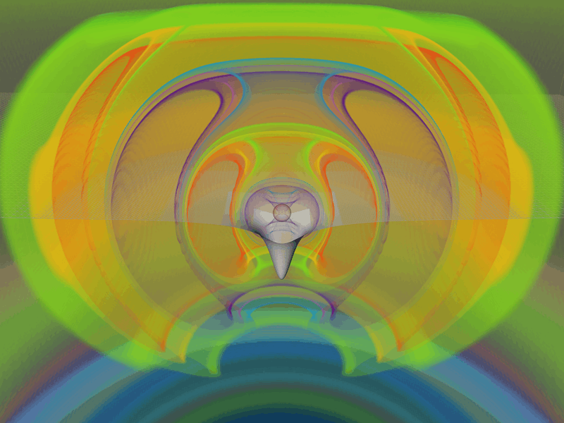 A concept drawing of a gravitational-wave emission from a collapsing star.