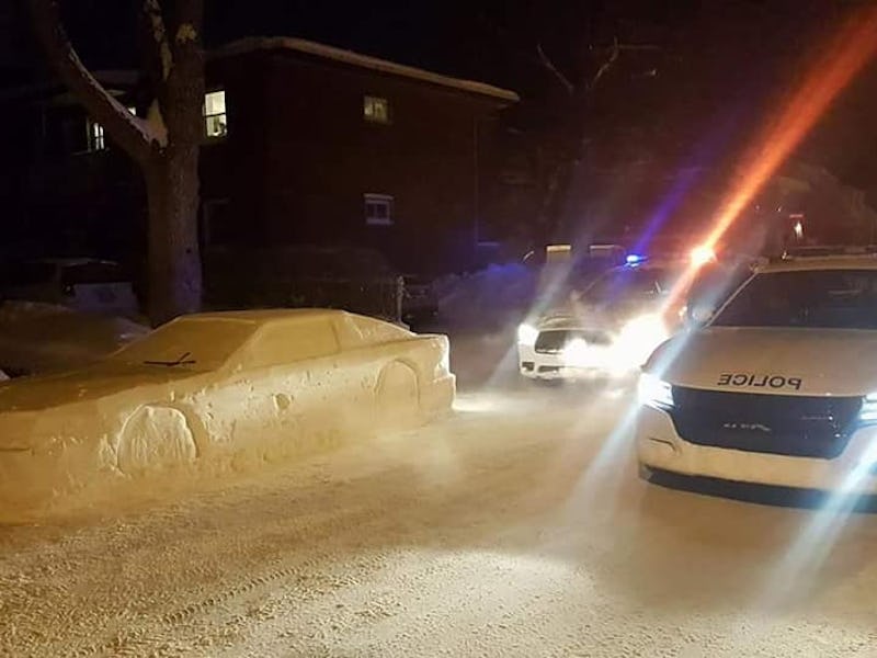 Later that night, though, it seemed Laprise’s design may have met an early end. On his design Facebook page, Laprise shared images of two cop cars checking out the scene, writing out a ticket for the vehicle.