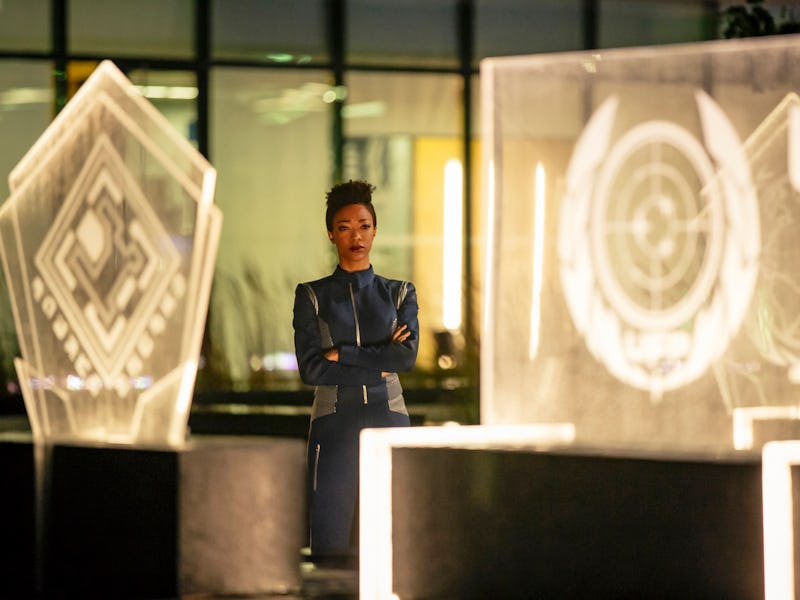 The voyages of the starship USS Discovery are about to boldly take a break. On Sunday, Star Trek: Discovery will air the final episode of its first season, and the stakes have never been higher for the Federation. New photos previewing the finale show Michael Burnham contemplating the United Federation of Planets, which teases an old-school Star Trek design.