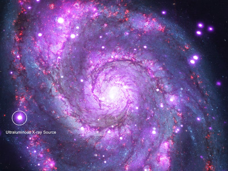 Yes, a handful of neutron stars — the husks of stars more massive than our sun but not necessarily big enough to collapse into black holes — are putting on light shows in the X-ray spectrum that defy any sort of human comprehension. And as an international team of researchers detail in the latest issue of Nature Astronomy, NASA’s Chandra X-ray Observatory has found a fourth such ULX in the Whirlpool Galaxy, otherwise known as M51.