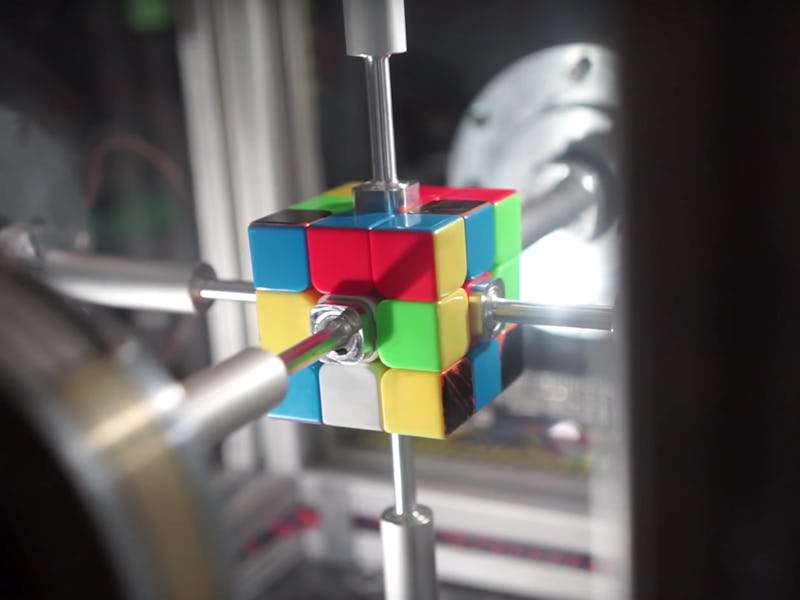To power the fast movements, the apir invested in specialized hardware. The Kollmorgen SevoDisc motors that hold the cube can move 90 degrees in just 10 milliseconds. The cube held in position is a “YJ Yulong Smooth Sitckerless Speed Cube Puzzle,” the cheapest they could find on Amazon. Ultimately, the pair only broke four cubes in their quest to beat the record.