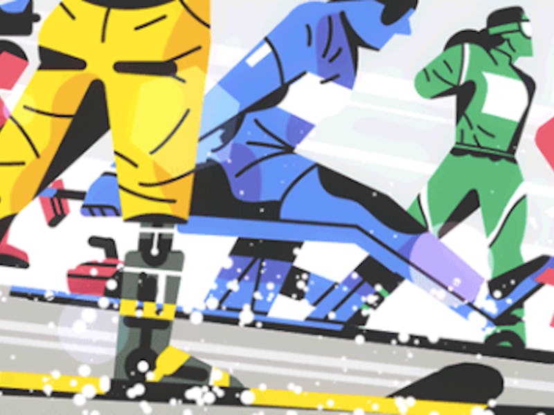 Friday’s Google Doodle honored the athletes involved in all events, showcasing six colorful competitors racing together in the same direction.