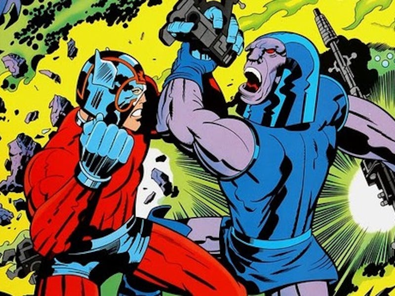 Kirby, who co-created the Fantastic Four, X-Men, and many other icons for Marvel at the start of his career, left Marvel for rival DC Comics in 1970. That’s where he created The New Gods, a franchise that can best be explained as a Shakespearean sci-fi fever dream. Full Kirby’s imaginative and often mind-expanding illustrations, the Fourth World saga, as it came to be known, told of the battle between the planets New Genesis and Apokolips. Godlike alien beings fought over good and evil, with Darkseid, the lord of Apokolips who sought a powerful Anti-Life Equation, being the ultimate evil.