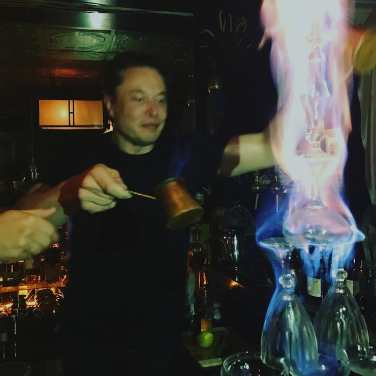Watch Elon Musk Pour Flaming Absinthe Over Tower of Glasses