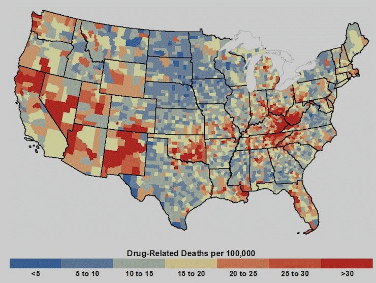 This Map Shows Where the Most Drug-Related Deaths Happen Across the U.S.