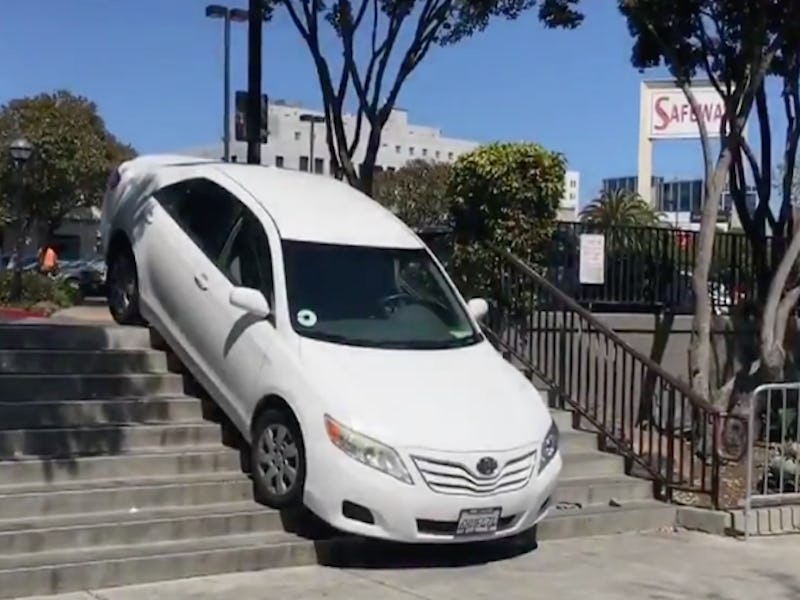 An Uber car got stuck on a public stairway in San Francisco on Monday afternoon, ostensibly suggesting that’s one way to get riders to their destination quickly.