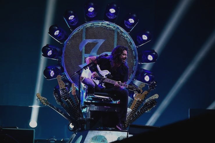 Dave Grohl sitting on a chair of splayed-out guitars is the closest we’re gonna get to the real-life fan fiction of the Hound winning The Game of Thrones. Was the setup actually inspired by A Song of Ice and Fire? Or is this just what it looks like when you’re a Foo Fighters frontman with a recently-busted leg, you have too many guitars, and it’s the Fourth of July in Washington D.C.? You decide: