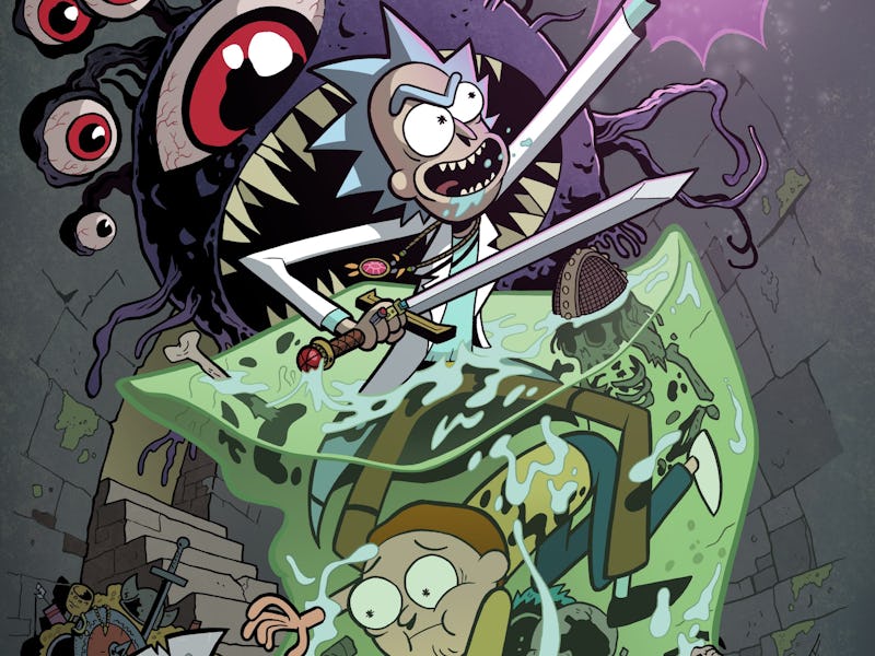 Somebody over at the Rick and Morty comic book publisher Oni Press heard that Infinity War was “the most ambitious crossover event in history,” so they decided to do something even crazier: an official crossover between Adult Swim’s mega-popular Rick and Morty and renowned fantasy nerdfest Dungeons & Dragons. If you thought Stranger Things was D&D-AF, then think again because in this comic, the entire Smith family from Rick and Morty is going inside a game of Dungeons & Dragons.