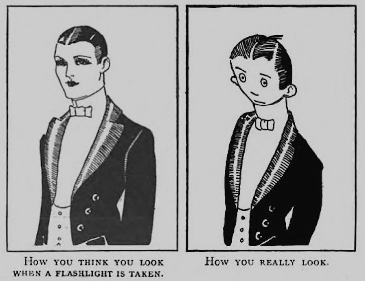 A recently discovered 1921 issue of the University of Iowa’s The Judge, a satire magazine, is shown to contain a dated version of the beloved modern-day meme. On one side of the image, a handsome gentleman is shown in a block subtitled: “How you think you look when a flashlight is taken.” The other side of the image, a box displaying shall we say a less-than-debonair version of the man is captioned: “How you really look.” Ouch! Savage yet relatable, as the kids say.