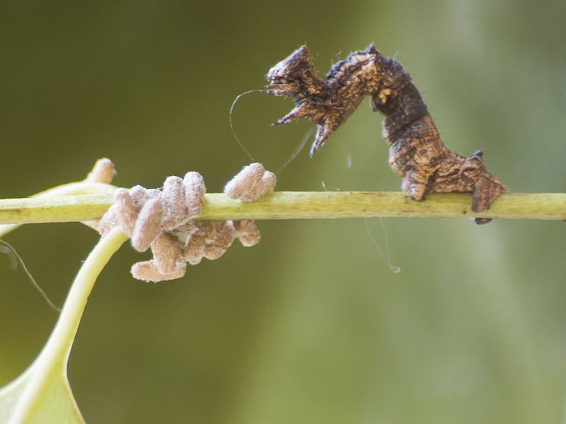 This type of parasitic interaction is used primarily to force unsuspecting victims into becoming zombie nannies. For example, parasitic wasps will inject their eggs into a caterpillar with a sting (don’t feel too bad for caterpillars though, because they use also use pheromones to turn ants into their unwitting slaves). Once in the caterpillar’s blood, the eggs hatch into larvae that feast on the blood — and, when the time is right, up to 80 of those suckers explode from the caterpillar in a process that can only be described as hell on Earth.