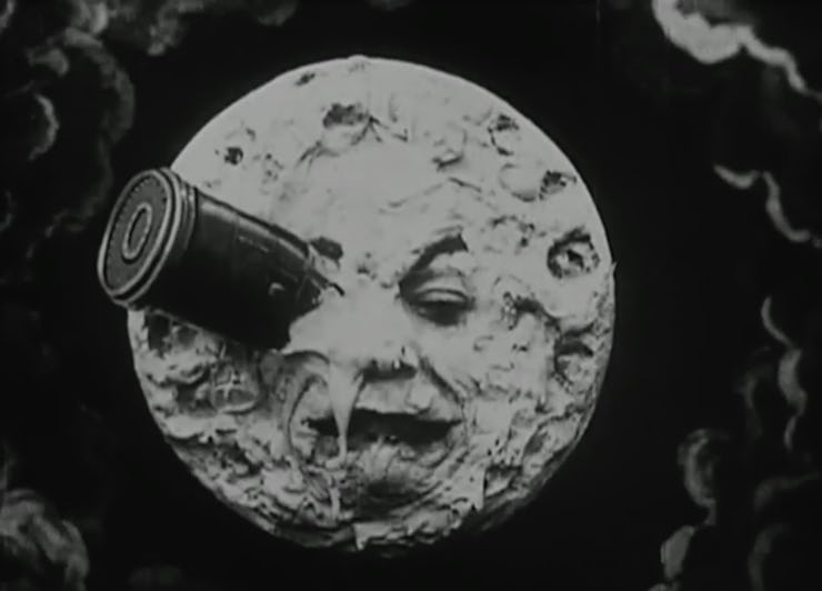 Between the years of 1899 and 1912, Méliès made over 400 films. He used his magician’s background to develop illusions like stop motion, fading out, slow motion and double exposure. His whimsical films brought a sense of charm to the nascent medium: one of his most famous films, “Le Voyage dans la lune” (“A Trip to the Moon”), sees a group of explorers shoot themselves to the moon in a capsule launched with a cannon. It’s enough to make modern-day space explorers like Jeff Bezos inspired.